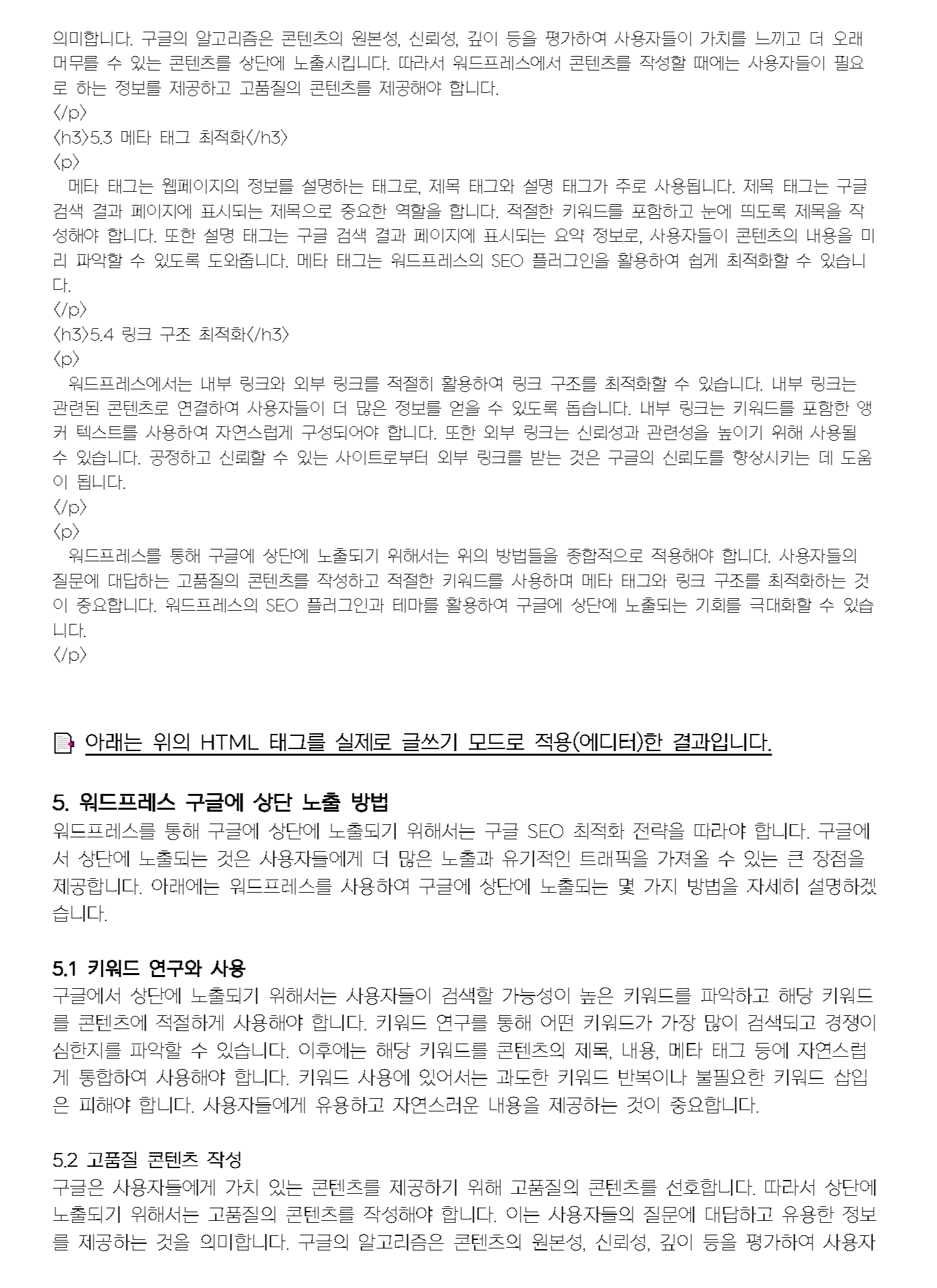 (10) 워드프레스 100% 호환되고 HTML로 즉시 생성 가능한 고품질 SEO 최적화 블로그 글을 생성 프롬프트