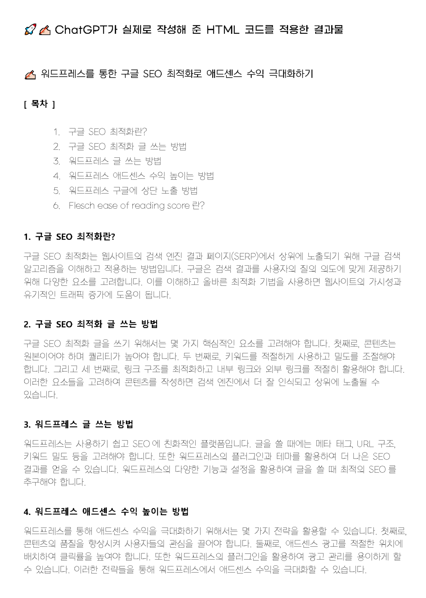 (1) 이제는 ChatGPT로 아래와 같은 수익화 글쓰기 작업을 할 수 있게 되었습니다.