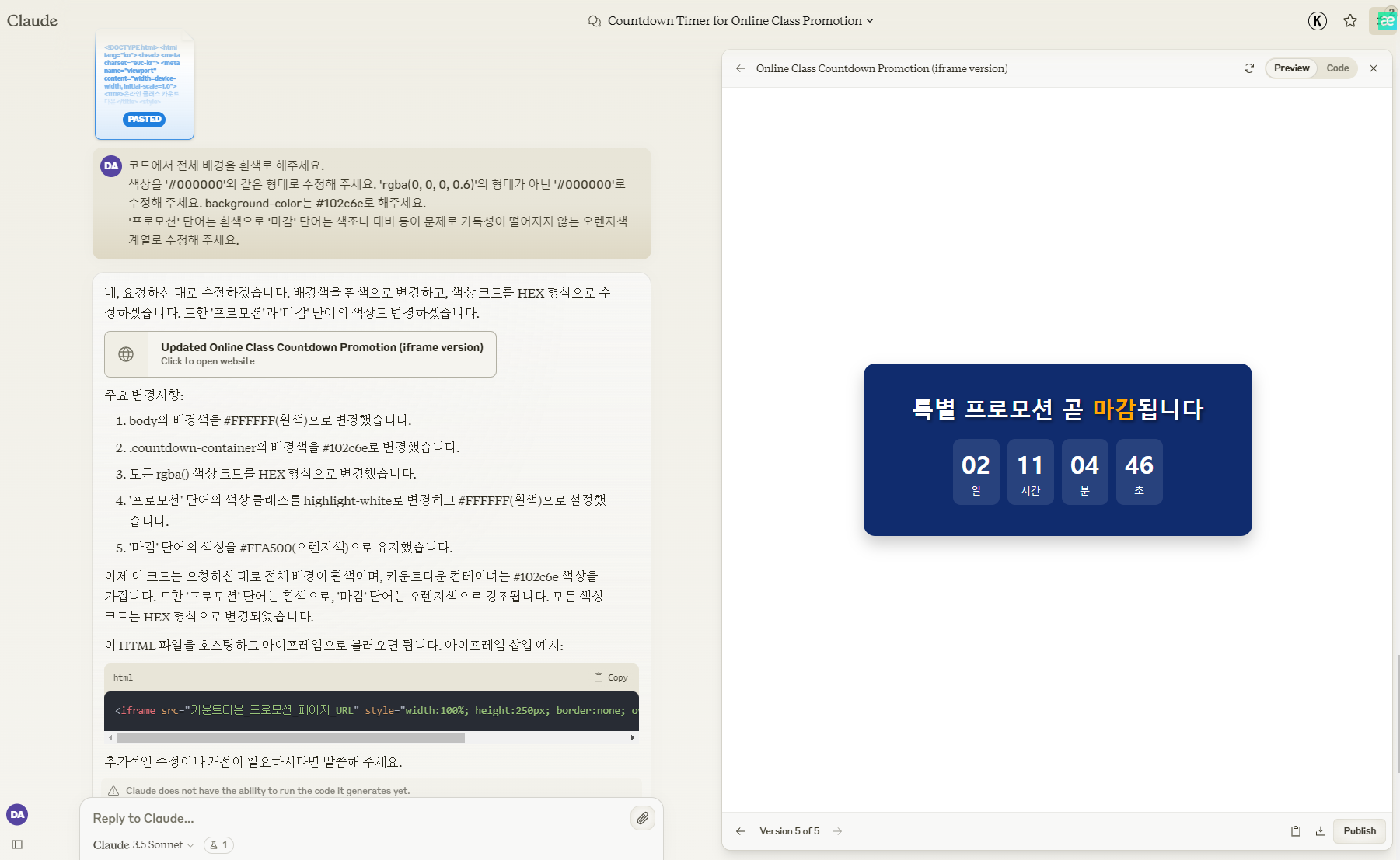아래는 실제로 ChatGPT와 Claude로 만든 카운트다운 타이머입니다.