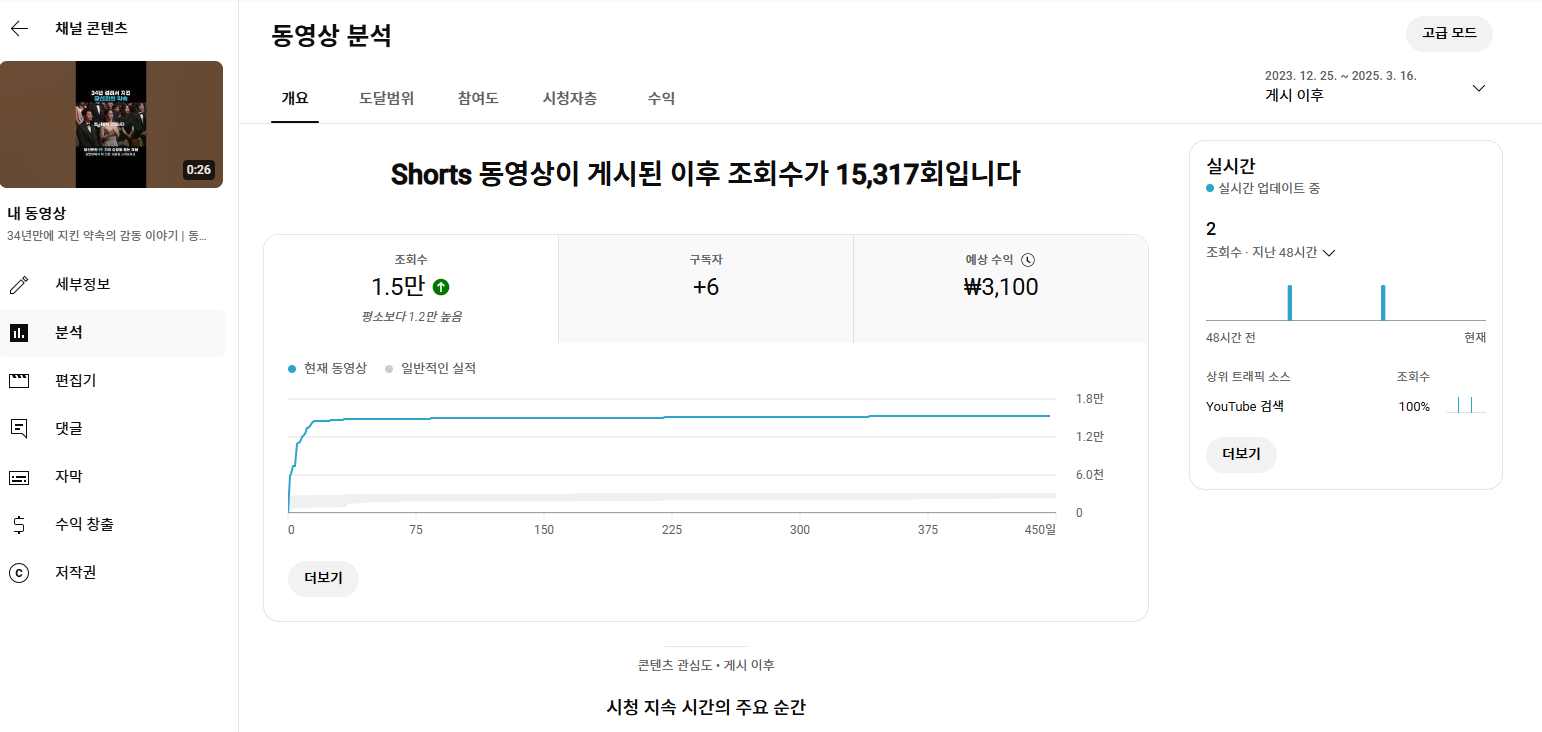 - 유튜브 9분짜리 롱폼 영상이 45,000회 조회