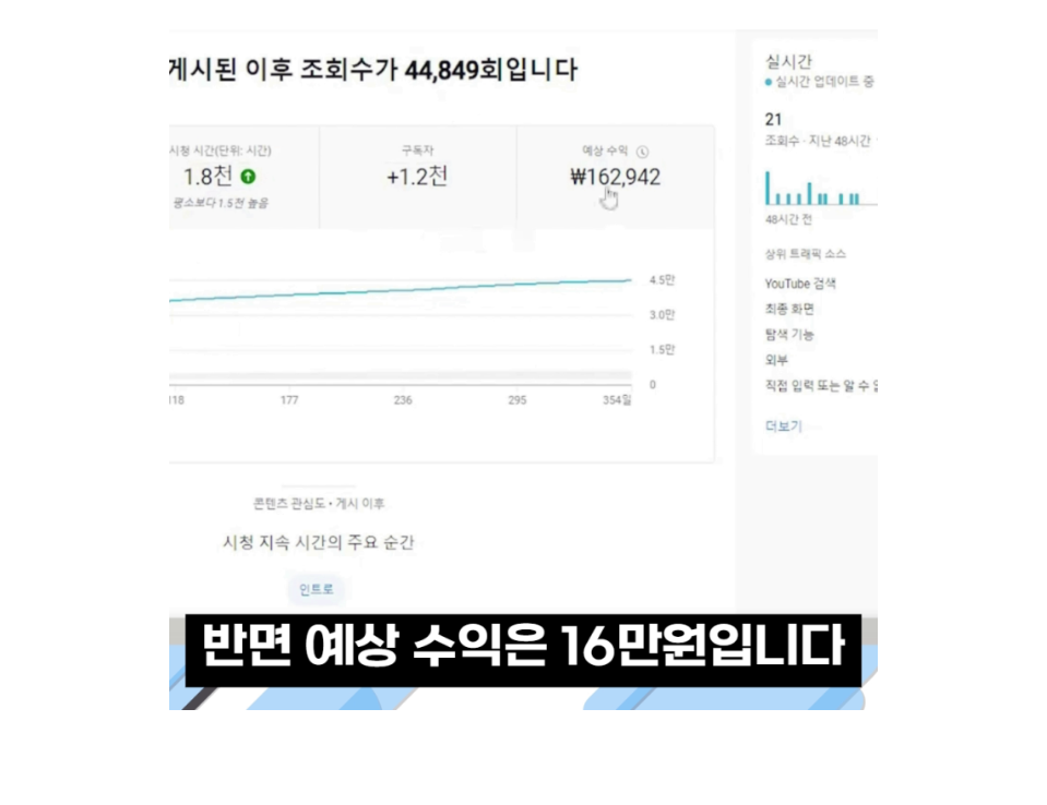 - (45,000 조회 × 2.5원) = 약 16만 원 수익