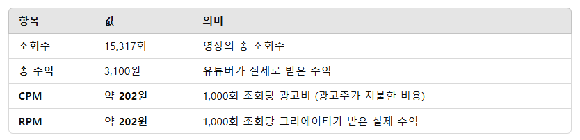 즉, 동일한 조회수라도 유튜브 쇼츠는 롱폼 영상보다 수익성이 낮으며, 많은 조회수가 필요합니다.