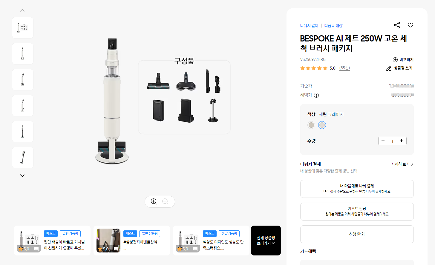 공식 출시가는 약 150만 원대로, 타 무선청소기보다 높은 가격대를 형성하고 있습니다.