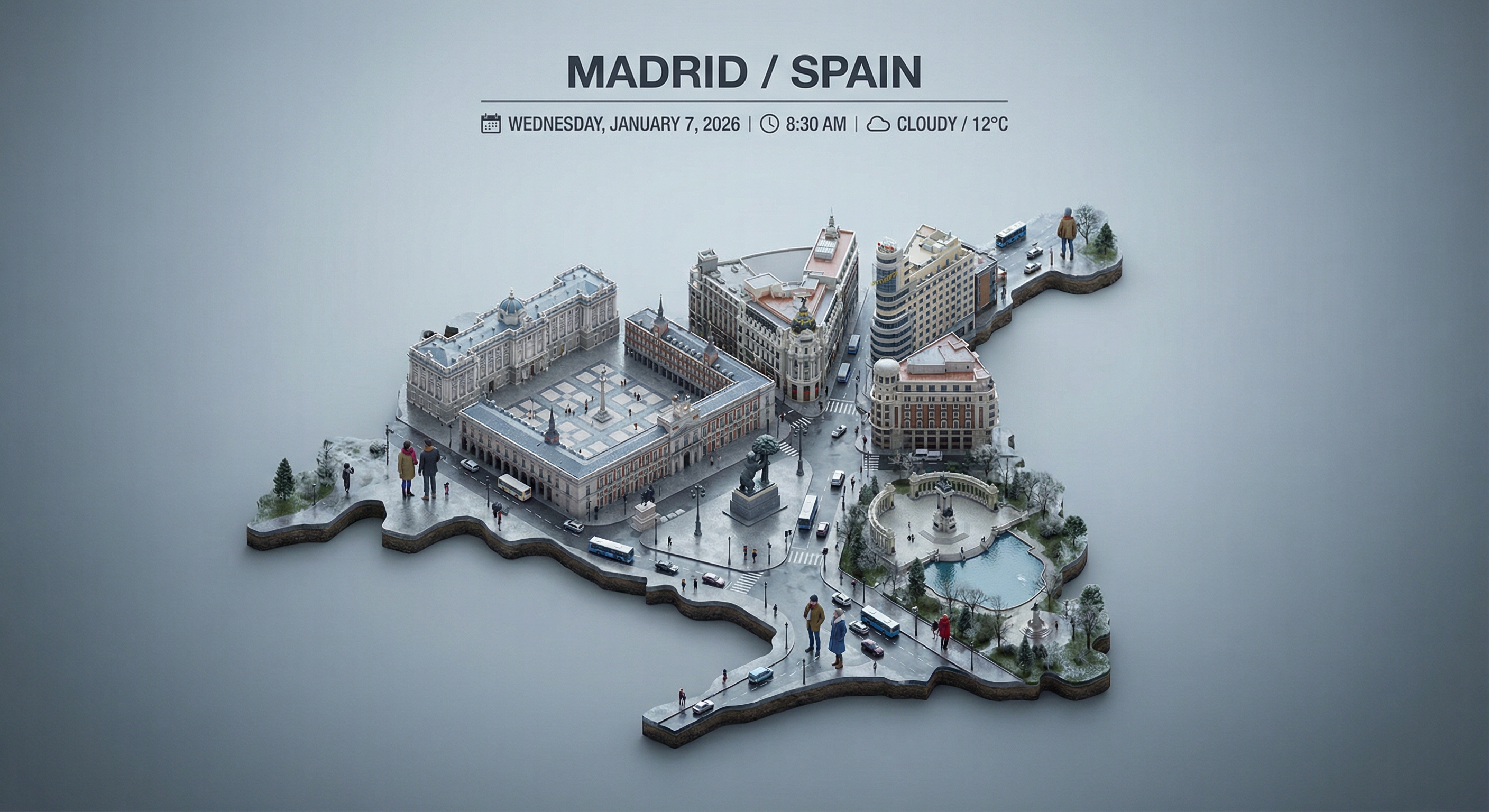 동일한 도시라도 날씨에 따라 전혀 다른 분위기를 전달할 수 있습니다. 흐린 마드리드는 회색빛 채도와 젖은 노면, 부드러운 조명으로 감성을 자극하고, 맑은 바르셀로나는 강한 대비와 따뜻한 색온도로 생기를 불어넣습니다.