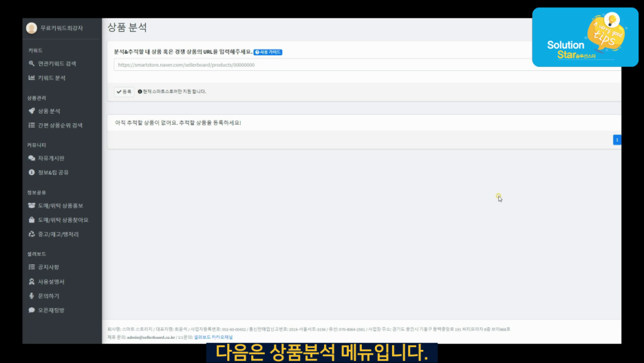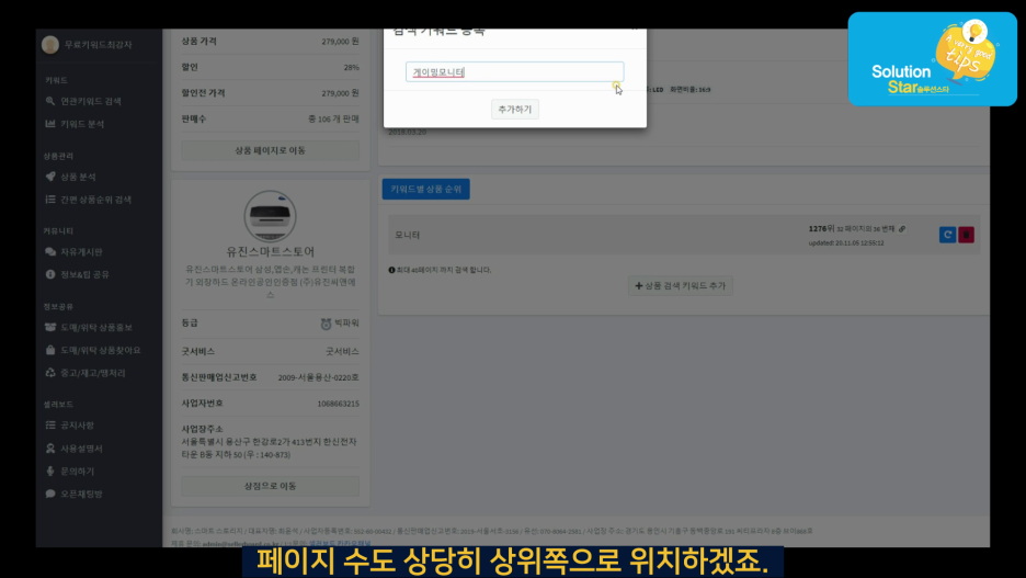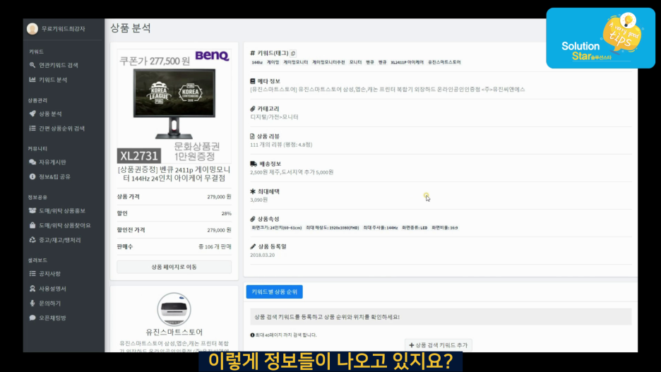 상품 분석 그리고 상품 순위 검색까지 가능하고요.