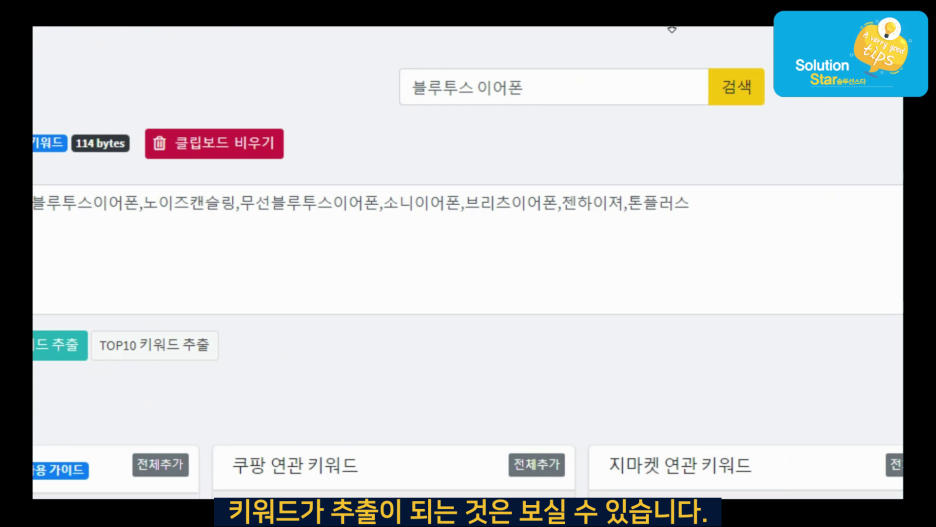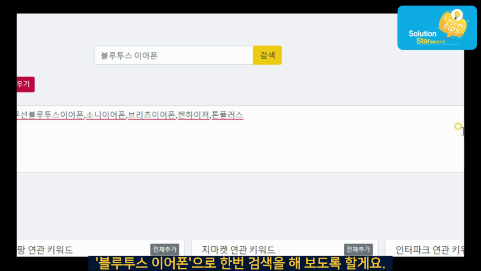화면에서 보시는 것처럼 먼저 연관 키워드 검색을