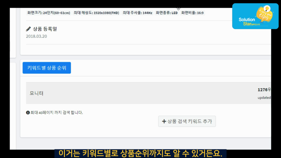 이거는 키워드별로 상품 순위까지도 알 수 있거든요.