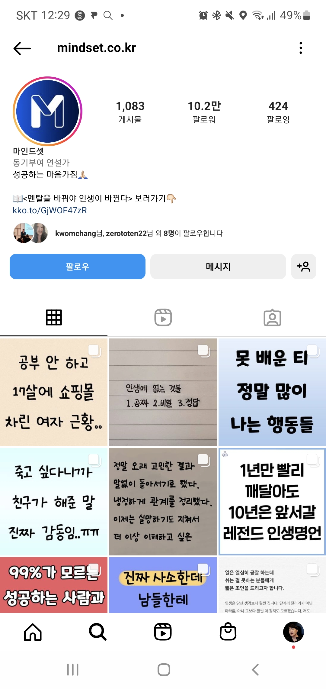 개인 계정의 팔로워들과