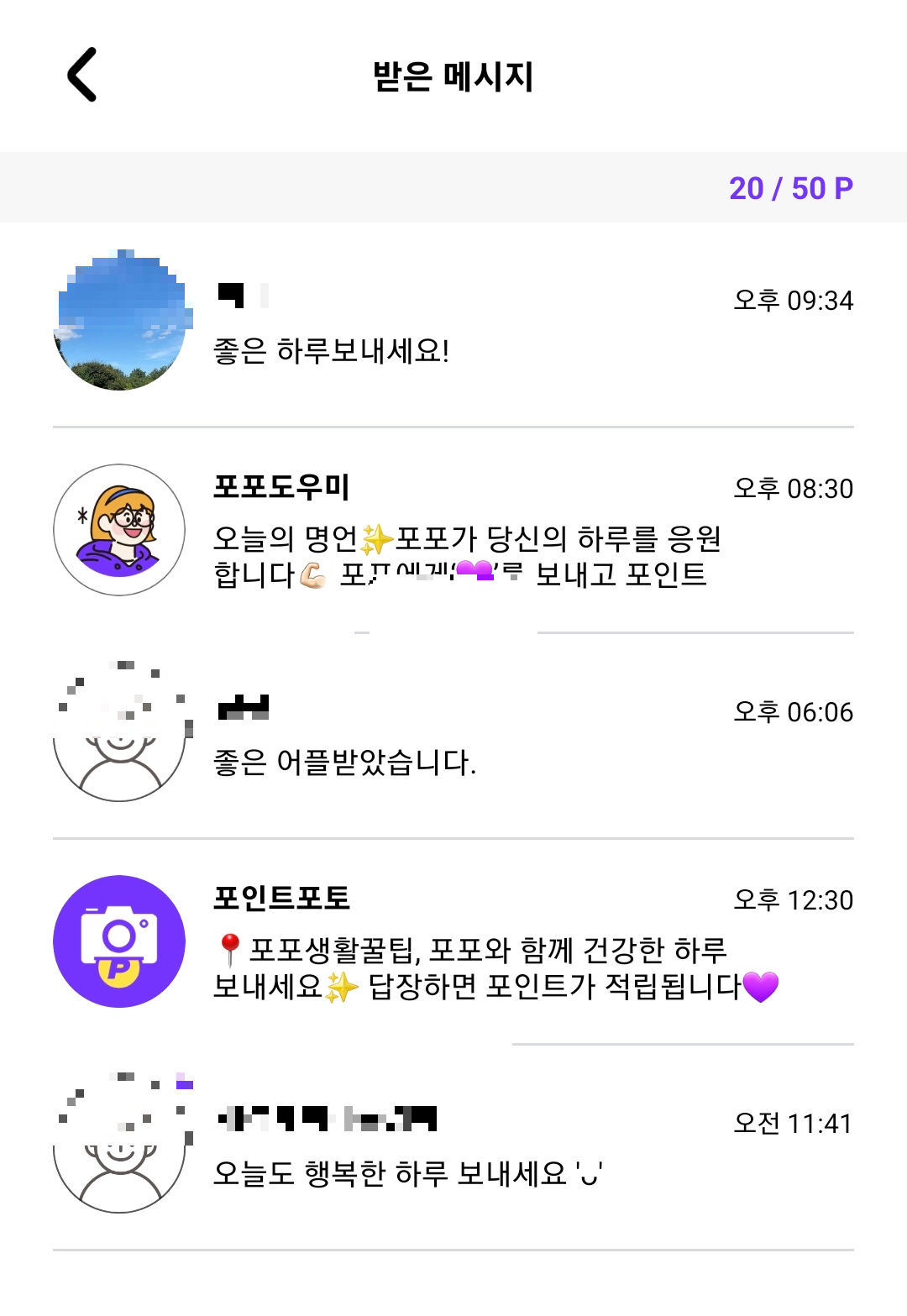 친구가 보낸 사진을 받기만 해도 포인트가 적립되는데요