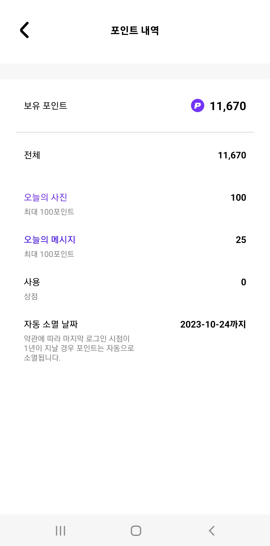 사진으로 받을 수 있는 포인트 매일 100포인트이고