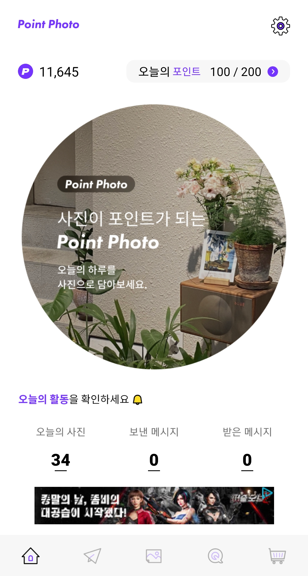 하루 동안 찍은 나의 사진을 포인트로 적립해 주는 앱테크입니다.