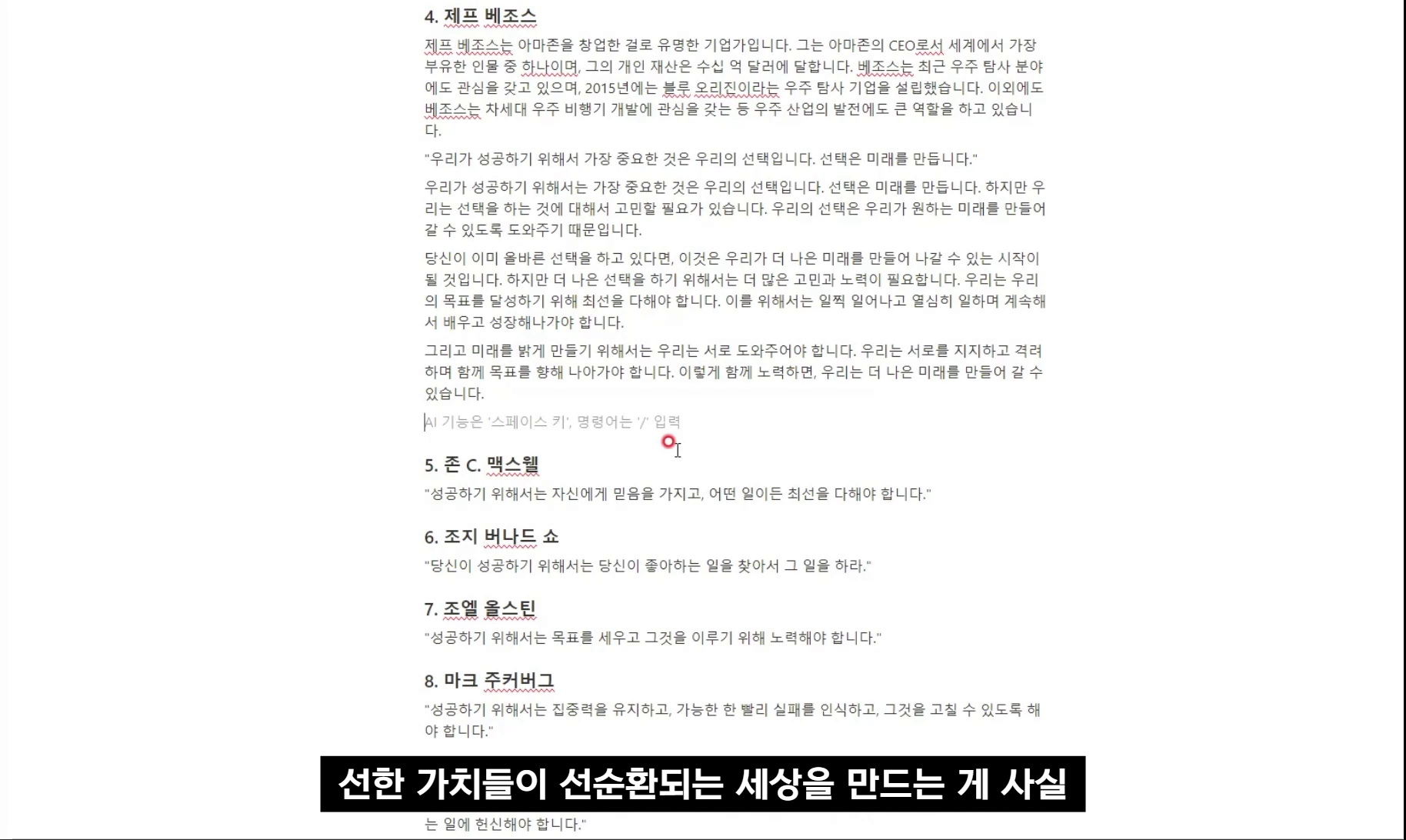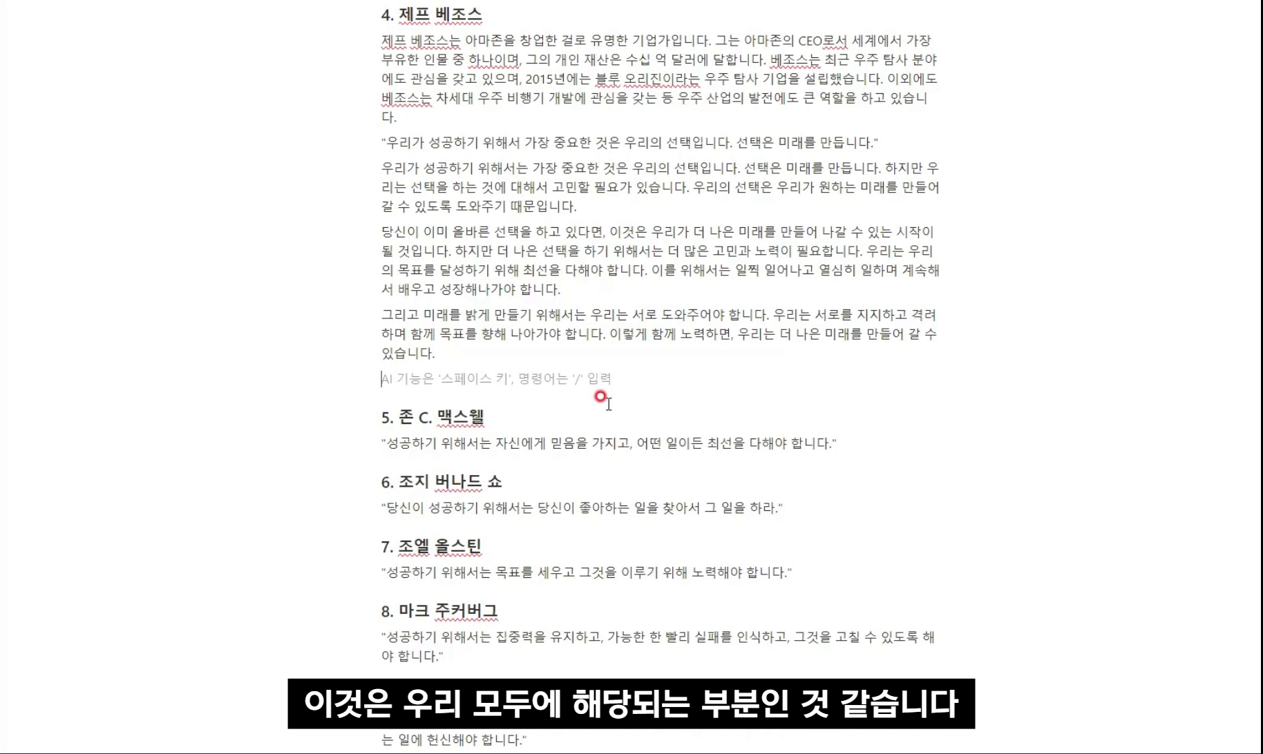 유명인사와 저명한 책 출간저자의 동기부여 메시지를 물어봤거든요