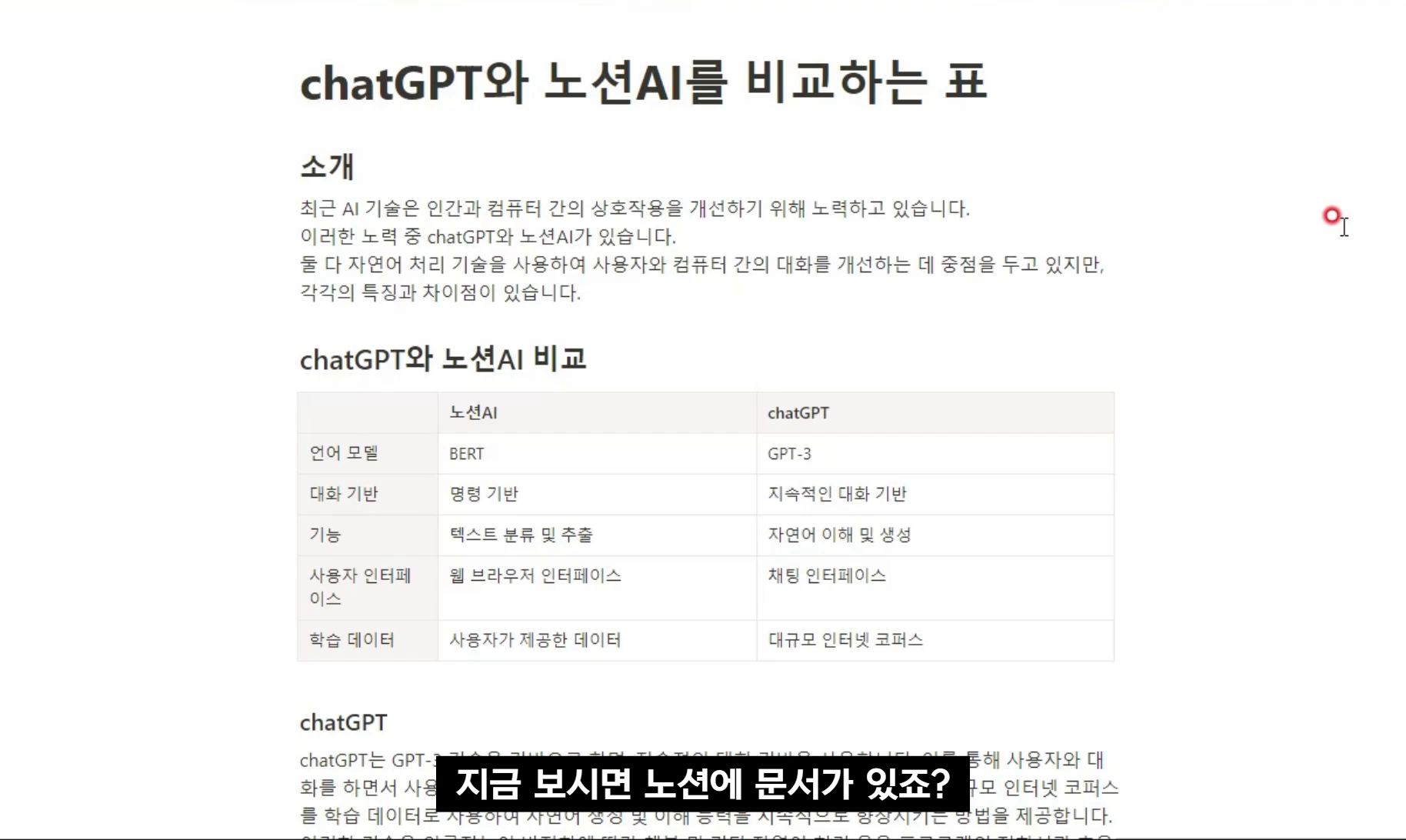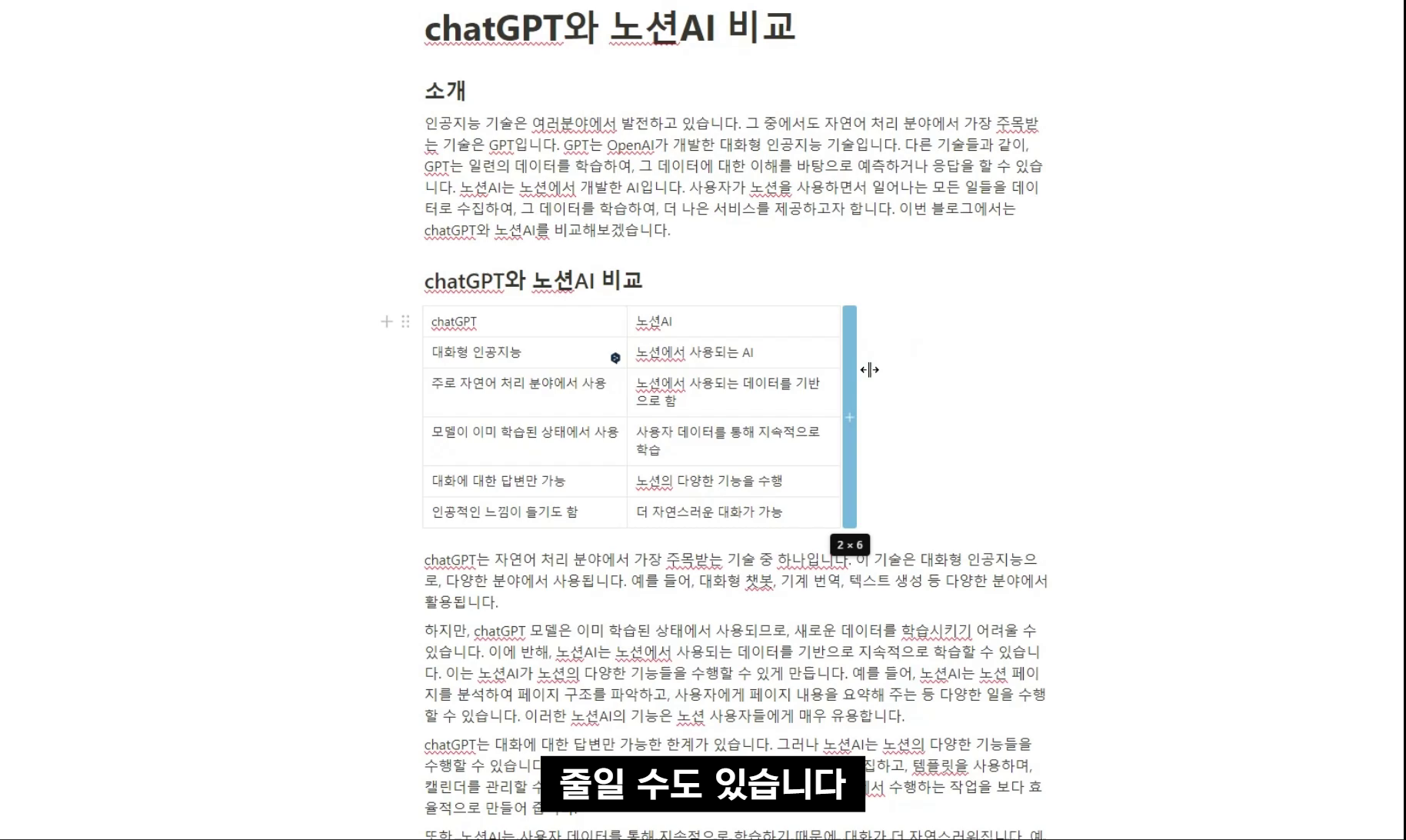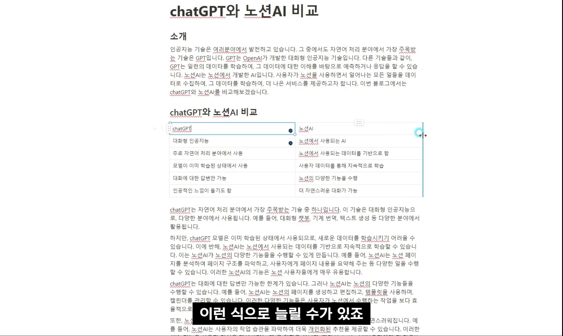 노션 AI로 3분만에 작성한 chatGPT와 노션AI 비교 문서입니다.