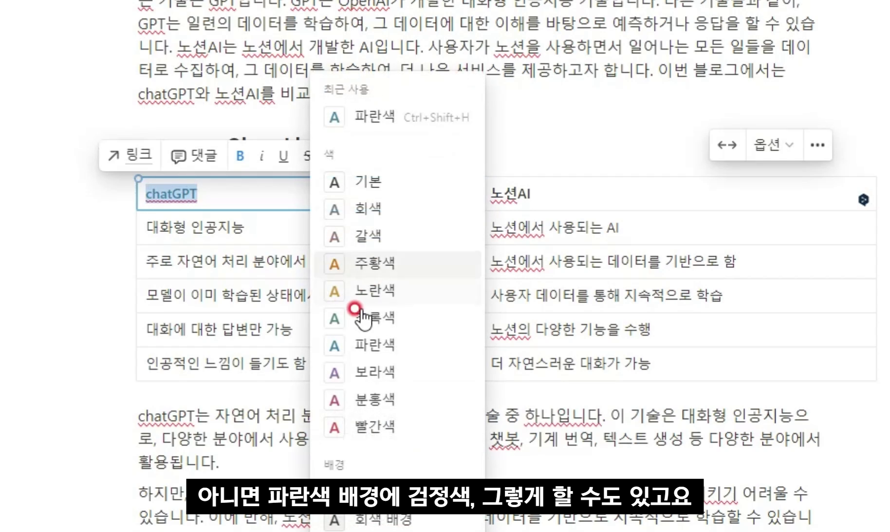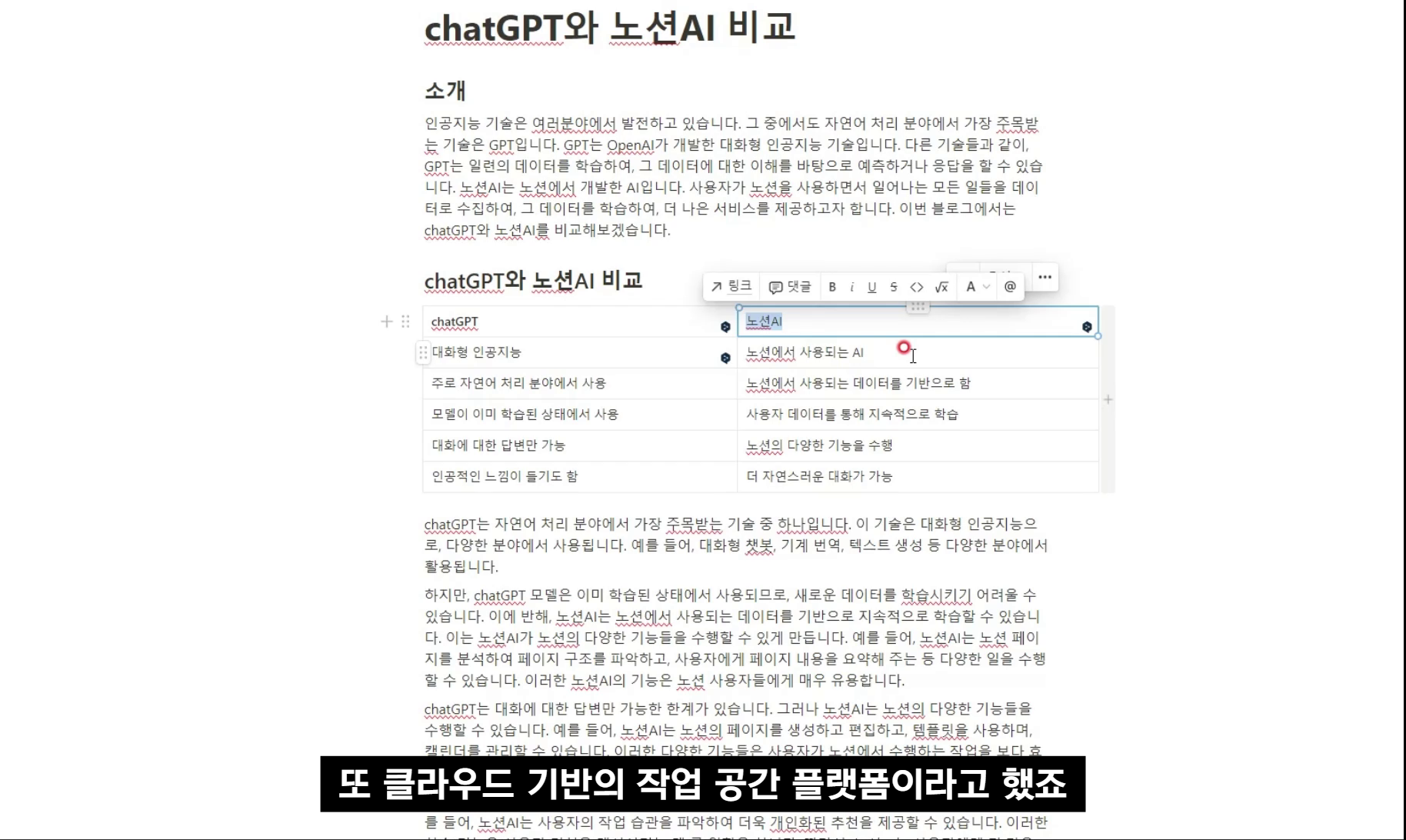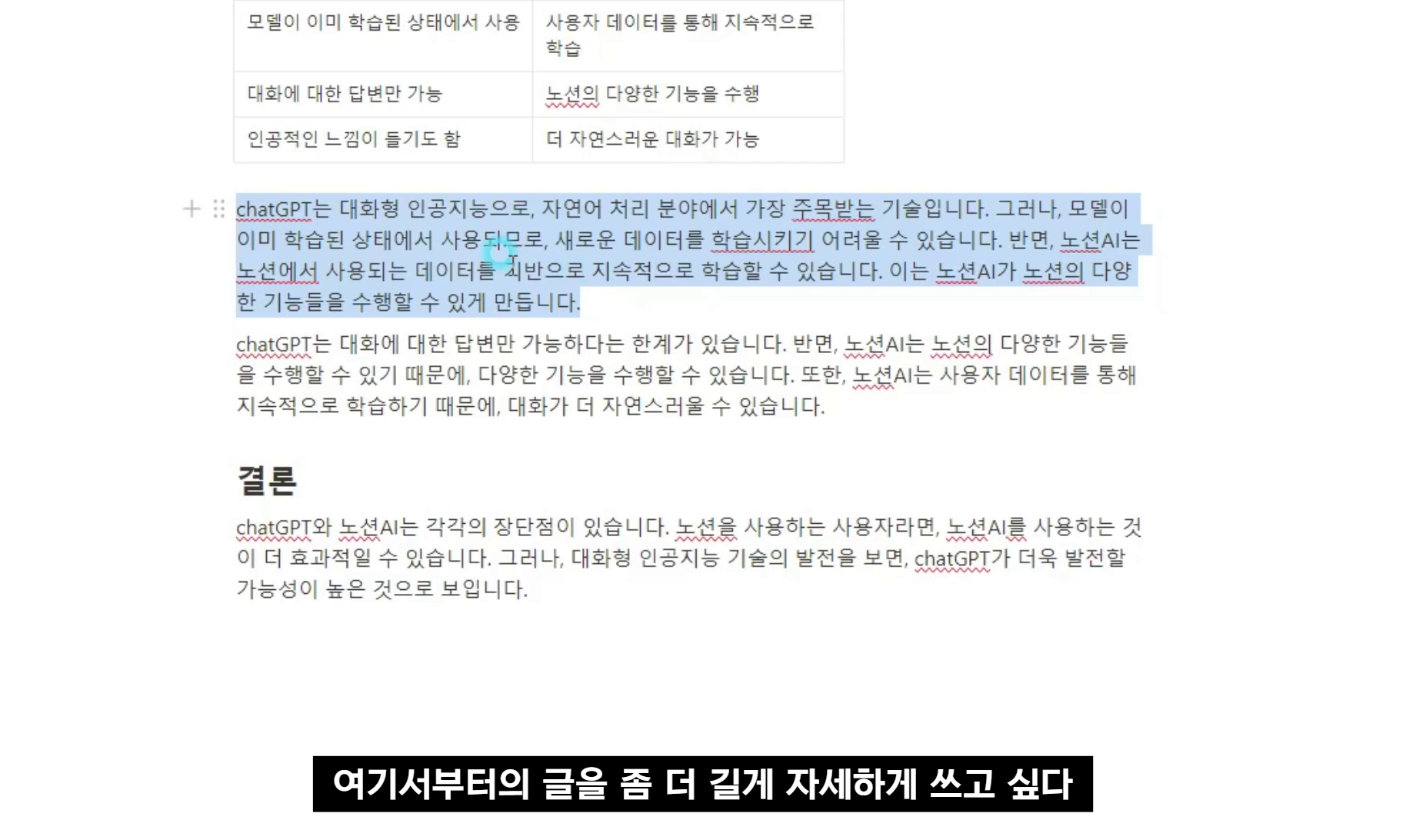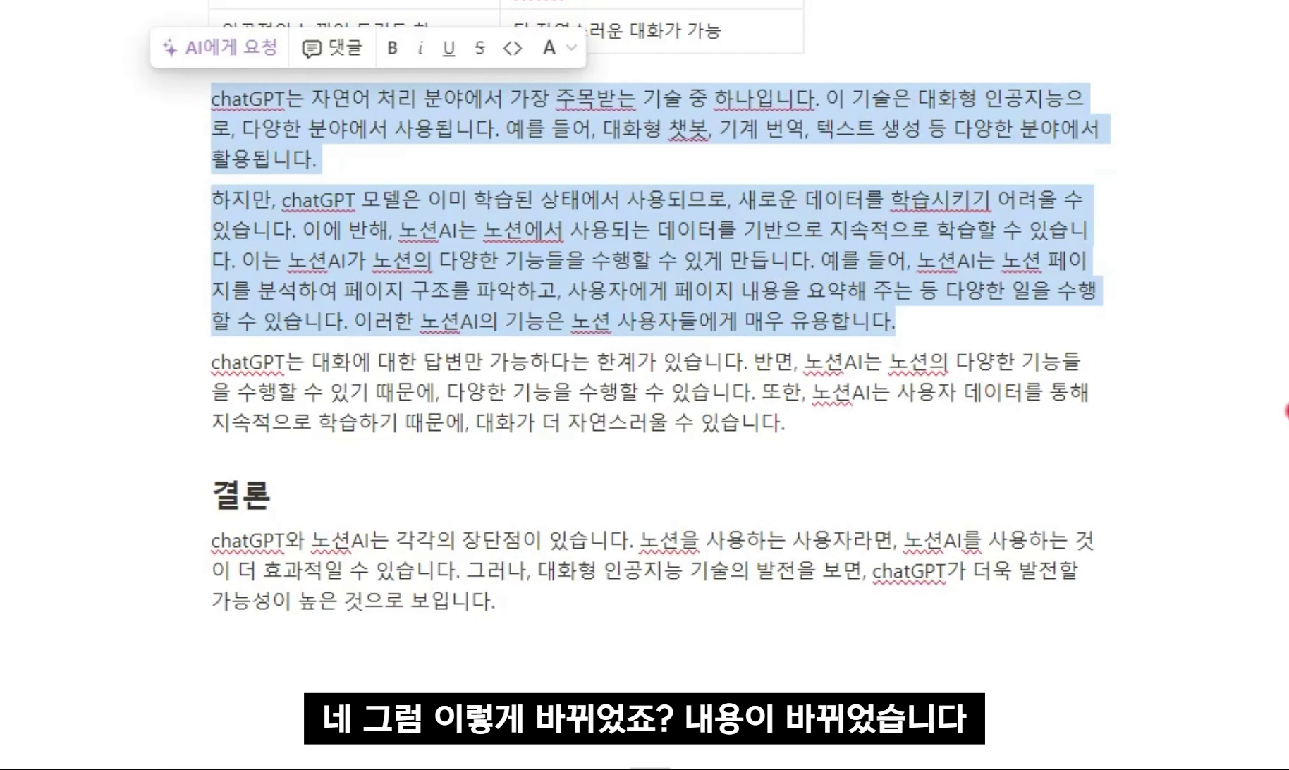 노션 AI로 3분만에 작성한 chatGPT와 노션AI 비교 문서입니다.