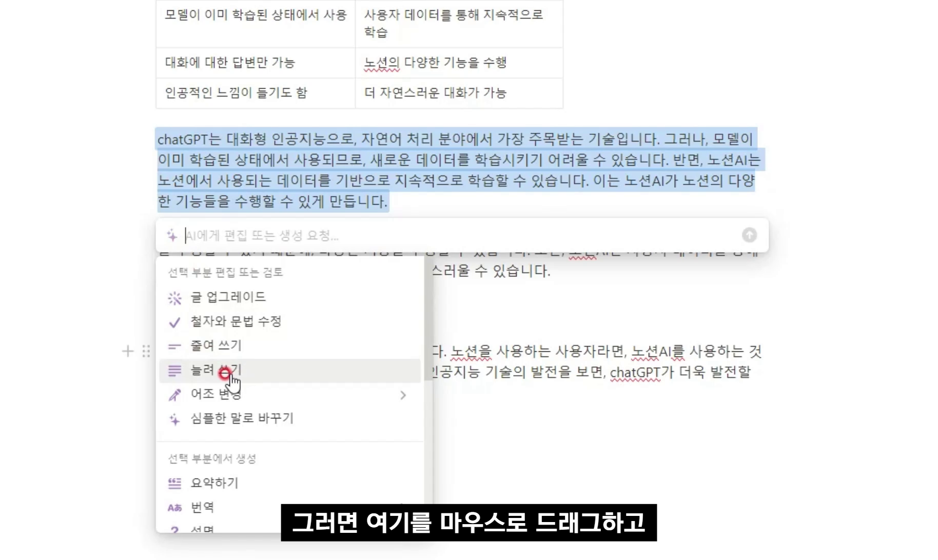 노션AI와 chatGPT는 모두 자연어 처리 기술을 활용하여