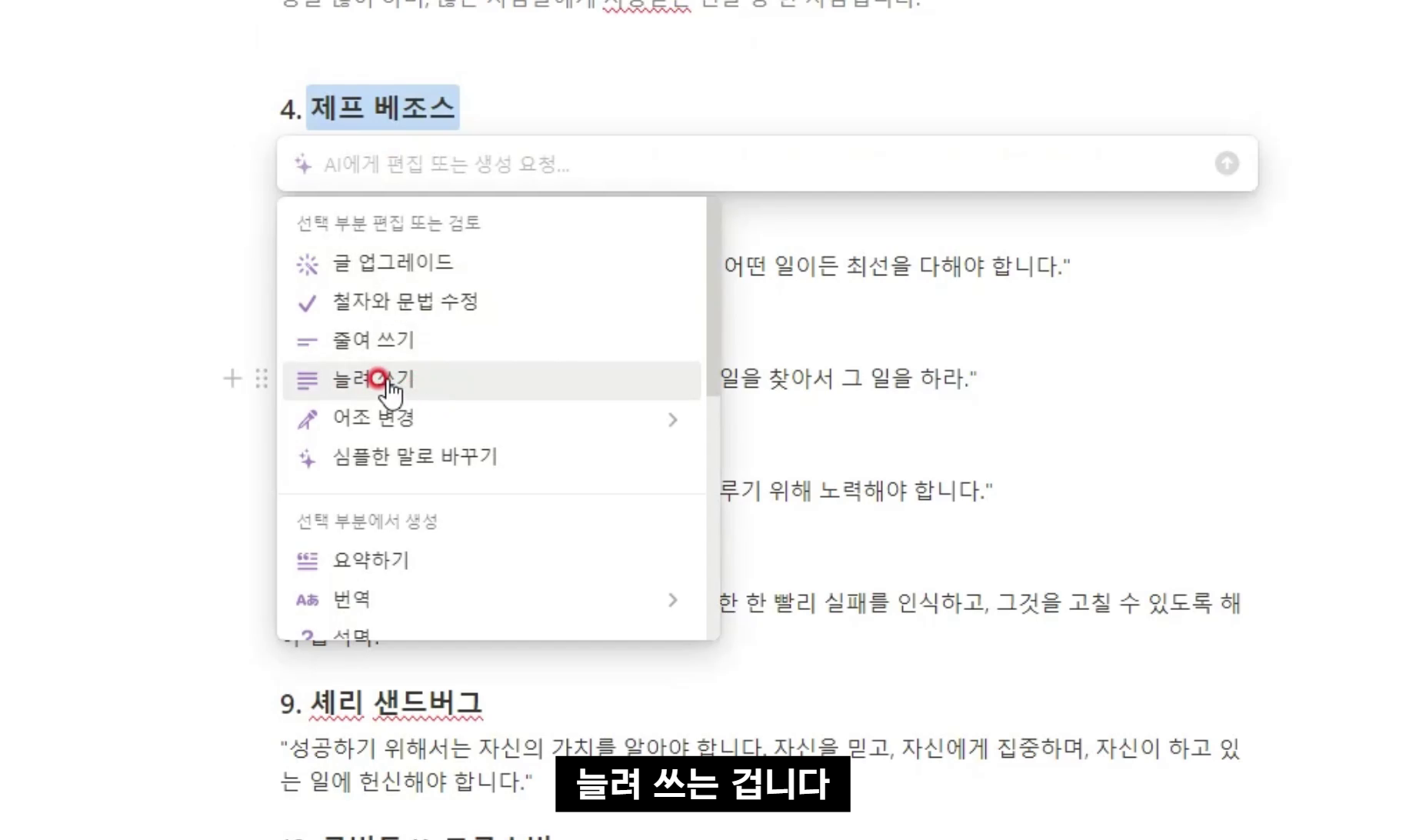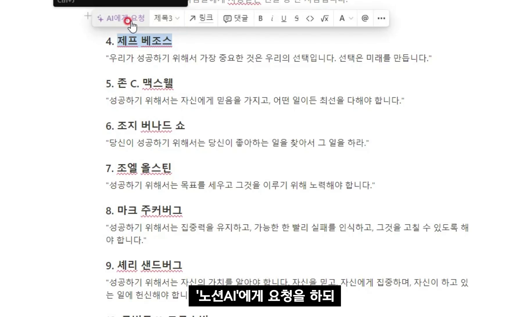 '노션AI'에게 요청을 하되